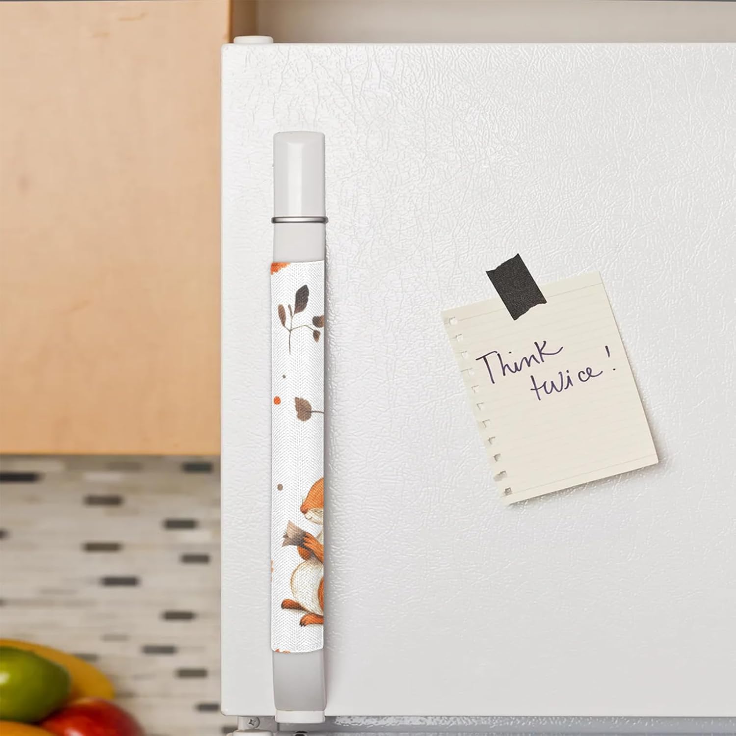 Product includes: 2-piece handle cover. Dimension: 14.09 * 5.43 inches. Made of polyester fabric which is easy to clean,and adjustable size for more convenient use; Printed patterns on both sides, easy to clean; Set of 2 Handle Covers:Our covers have a Velcro fastening for easier adjustment,detachable and easy to assemble and a perfect fit to any kitchen appliance. Elegant: The simple casual design of these covers is a stylish addition to your kitchen or luggage decor. Multiple Uses: Suitable for handles of kitchen appliances such as refrigerators, ovens, and microwaves, while also decorating the kitchen, combining practicality and decoration. Nursing method: Machine wash in gentle circulation and cold water, hand wash is best. Do not bleach.