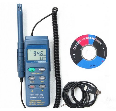 Portable Humidity Temperature Meter Triple Display PC Interface 16000 Records Datalogger'are data loggers enhanced from 310/311. We have built memory for 16,000 records in these testers. The sampling period is programmable and there is a real time clock in the tester. The Windows based software that comes with each unit is very easy to operate. The users only have to connect the cable and call the program and no extra setup is needed.