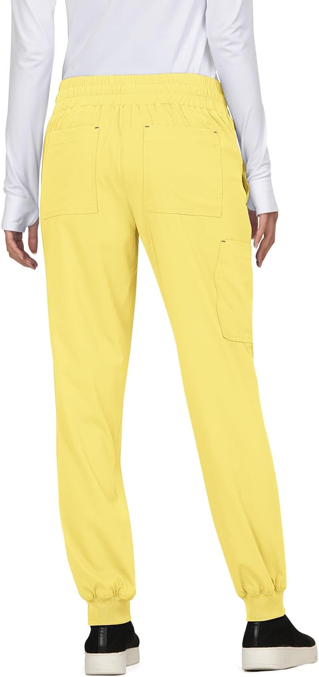 koi Basics Gemma Jogger Pant has an ultra thick waist with drawstring tie and elastic at the hem. This lightweight, moisture-wicking fabric features 2 front pockets, 1 cargo pocket, and 2 back pockets.