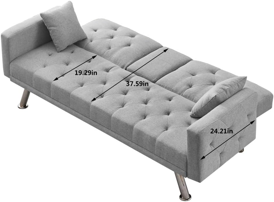 MULTIPLE ADJUSTABLE POSITIONS: 3 adjustable positions give you different comfort levels, if you want to watch TV in the living room, you can adjust the backrest to 120° , if you want to take a nap, you can adjust the angle to 180 ° as a bed. All in all, the adjustable backrest can meet the different needs in your life.Provide customers with the best user experience. The soft backrest locks into place to provide the right support for your back and waist. As for the upholstered seats, it doesn't feel hard to sit on. A cup holder can give you space for a drink or wine.Breathable cotton and linen textiles and sofas are supported by solid rubber wood feet, which can hold up to 500 pounds.Pairs perfectly with most home décor. Suitable for your living room, bedroom, dining room, den and hall.EASY ASSEMBLY: With detailed instructions and a complete kitMaterial:LinenSize: as shownProducts included:1* sofa(no other presentation items included).Notice:1. Due to manual measurement, please allow 2-3% error, before you bid, please make sure you don't mind.2. The color may vary due to different displays, please refer to the actual product.