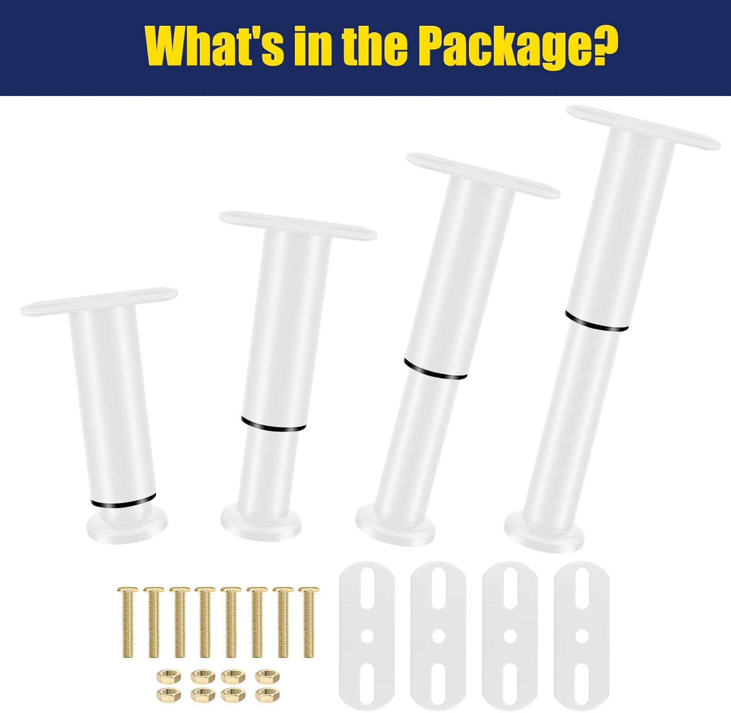 Olldag New 4 PCS Adjustable Height Bed Support Legs 10-17.72 Inch, Bed Center Replacement Legs, Metal Heavy Duty Furniture Support Legs for Bed Frame/Bed Center Slat (White)