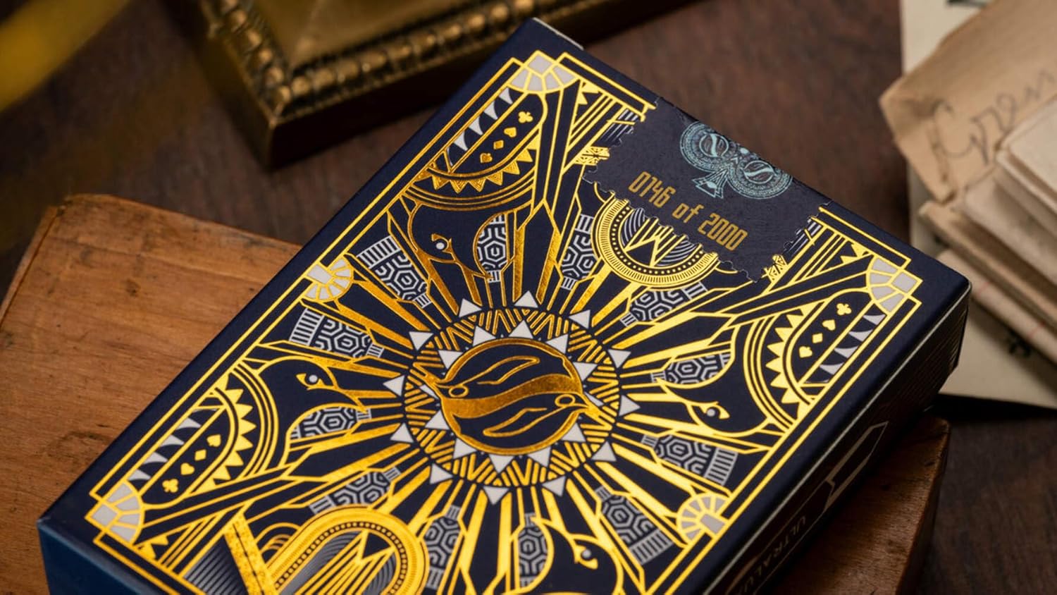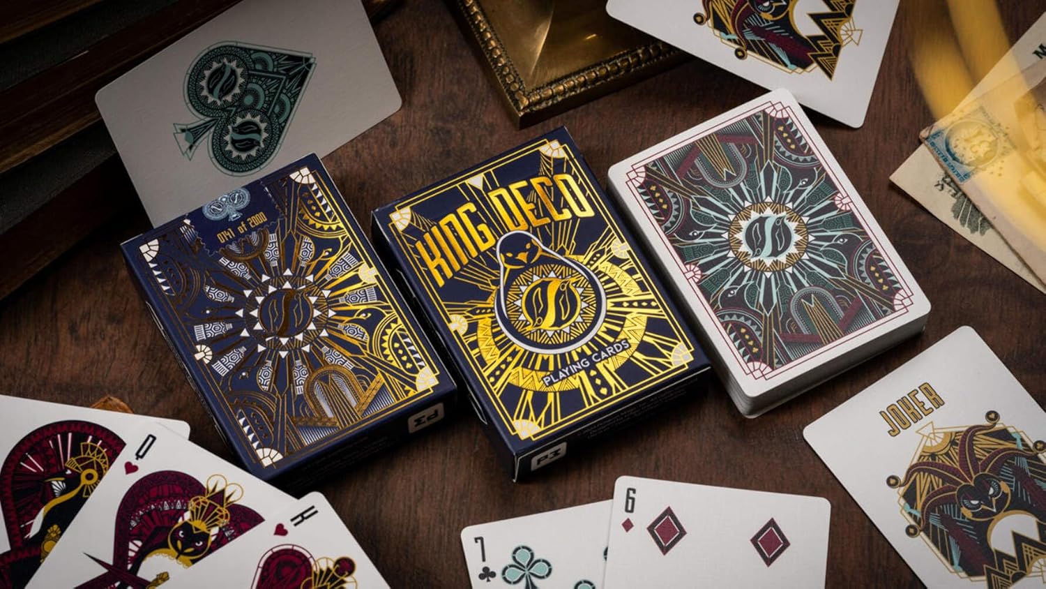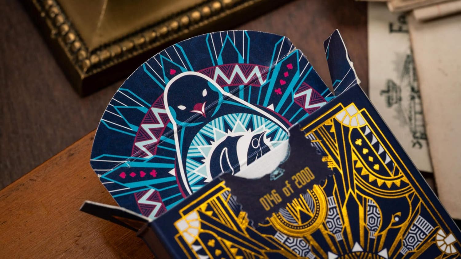 Playing cards fit for a king! King Deco Playing Cards combine the timeless appeal of art deco styling with a bit of modern flair to capture the majesty of some of earth's most amazing creatures - Penguins! Designed by Felipe Garcia Cardenas, the King Deco playing cards have 100% custom artwork across the entire deck. The multi-color back uses intricate geometry to create an eye-catching symmetrical design. The faces have custom pips and corner indexes, while the court cards each feature a different royal penguin. Duplicate masquerade jester jokers are provided, along with two gaff cards for magic tricks. The gloriously detailed tuck box is printed inside & out, and the outside is stamped with dazzling gold foil, creating a package that's truly fit for a king. Printed using Penguin Magic's exclusive UltraLux Finish and AquaFlow Coating, these traditionally-cut cards come out of the box ready for games, tricks, and cardistry. The whole package is topped off with a custom sticker seal, individually numbered out of 2,000. Limited edition of only 2,000 decks 100% custom artwork Designed by Felipe Garcia Cardenas UltraLux Finish & AquaFlow Coating Traditionally Cut Gold-foiled custom tuck box with inside & outside printing Duplicate jokers Includes 2 bonus gaff cards Individually-numbered stamp-style sticker seal