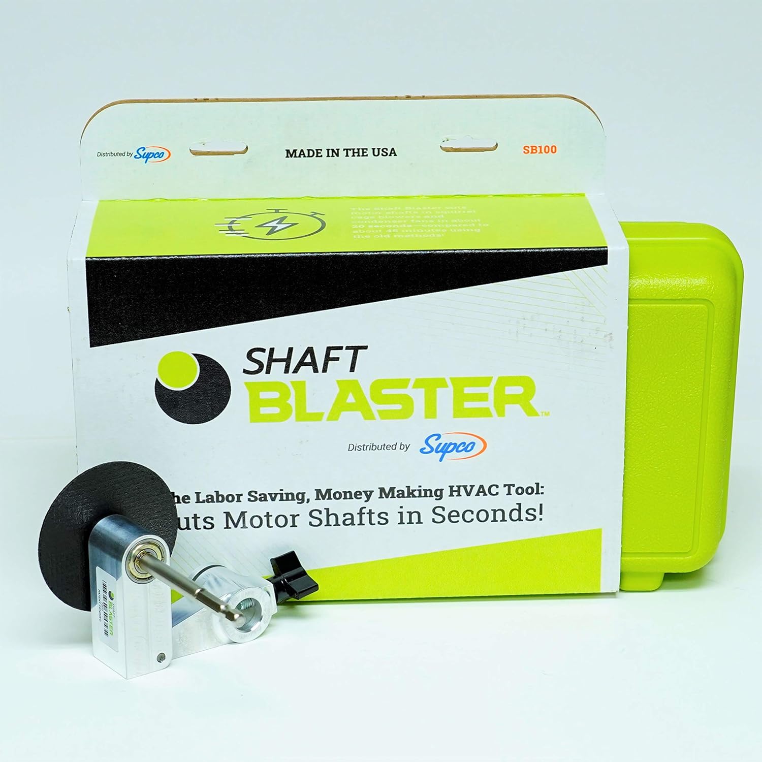 Supco number SB100Shaft Blaster Motor Shaft Cutting ToolCutting a motor shaft within the confines of the blower wheel is frustrating and time consuming - until now. Meet the Shaft Blaster. This tool cuts motors shafts in squirrel cage blowers and condenser fans in about 20 seconds.Features:Precision machined aluminum housingAluminum oxide grain cutting wheel for aggressive cutting actionStainless steel quick change arborTightens to motor shaft with thumb screwDistributed exclusively by SUPCOSUPCO TradeFox Approved for being a Technician-Invented productArbor Size: 1/4"Cutting Wheel : 3" OD x 1/32" Thick