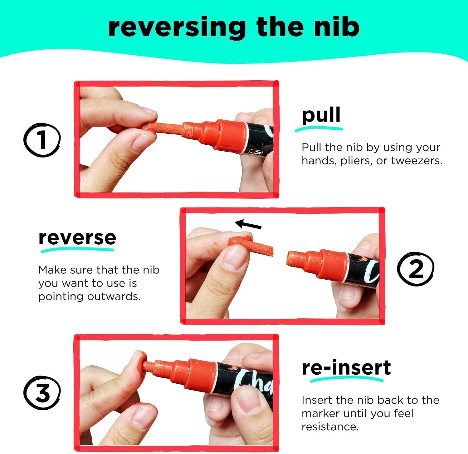 • Mess-Free: These liquid chalk pens are washable, dustless, non-toxic and safe for use at home
