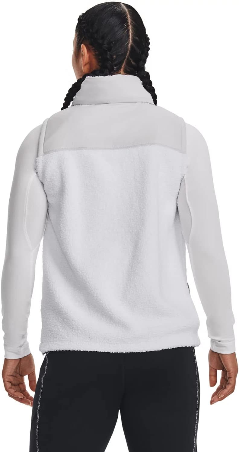 Step up your game with the Under Armour Mission Boucle Women's Vest. Designed for ultimate comfort, this vest is crafted from ultra-soft and warm textured boucle fabric. Water-resistant woven overlays provide added durability and protection against any type of weather. The high neck collar construction featuring an external bungee adjust tunnel offers a secure and customized fit. Zip hand pockets keep your belongings securely stowed away, while the adjustable hem gives you confidence in a snug, secure fit so you can take on outdoor activities with ease. It's time to raise the bar on your performance with Under Armour's mission-ready vest.