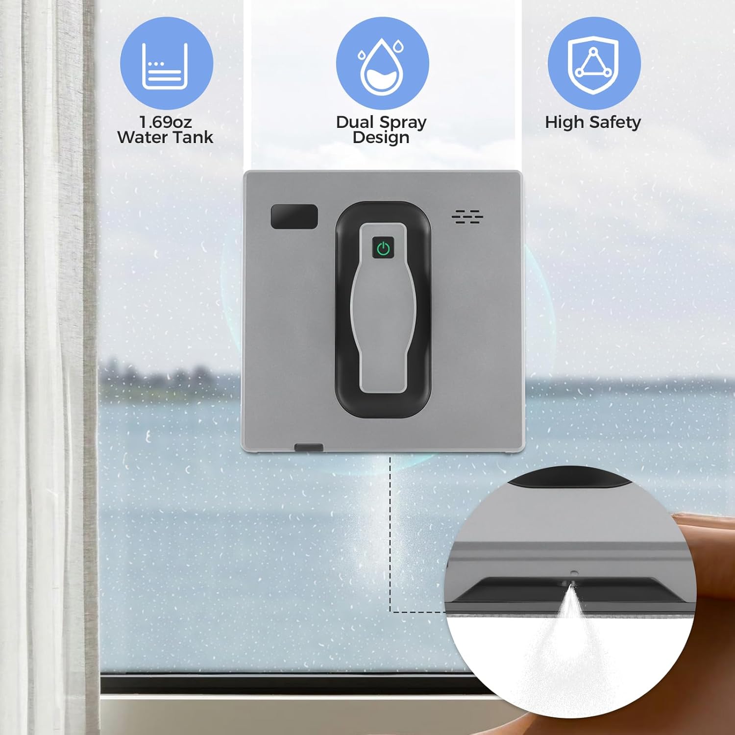 | Included Components | 1* Automatic Window Cleaner 1* Power Adapter and Cable 1* Remote Control 4* Fiber Cleaning Cloths 1* Watering Bottle 1* Safety Rope 1* English Manual |