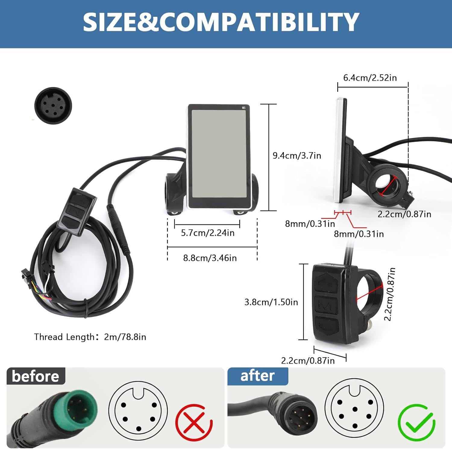 • Multiple Applications: The LCD display panel is compatible with voltages of 24V, 36V, 48V, and 60V, electric lcd display is suitable for handlebar sizes of 2.2cm, convenient and practical.