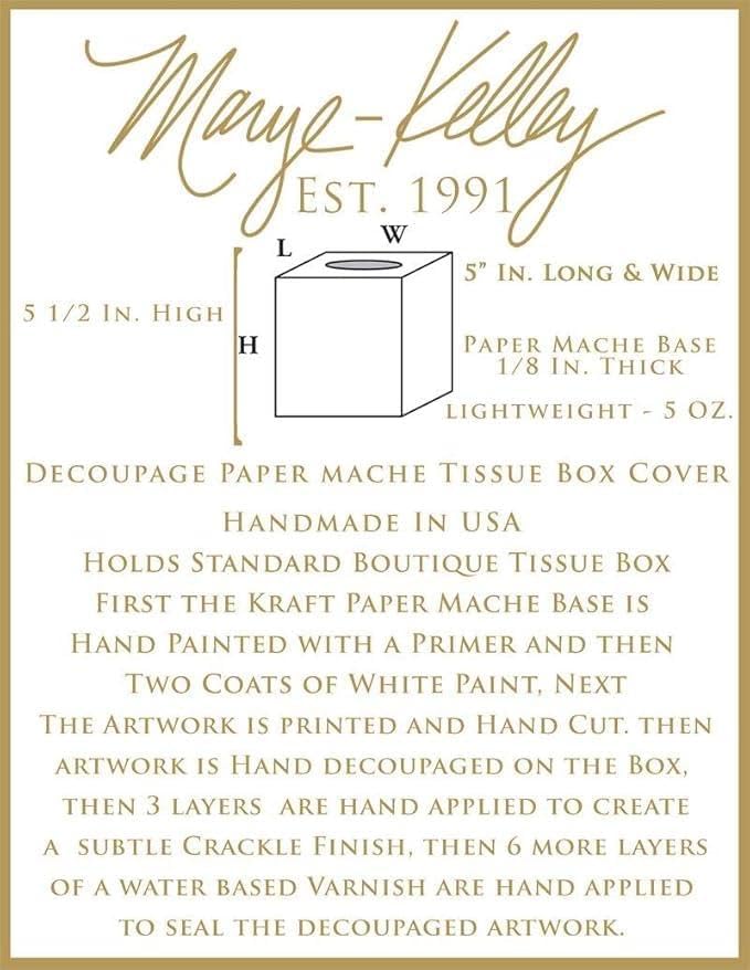Refresh and brighten your room by simply adding this elegant tissue box cover. This decoupage tissue box cover is handmade in USA. You will enjoy using it for years to come.