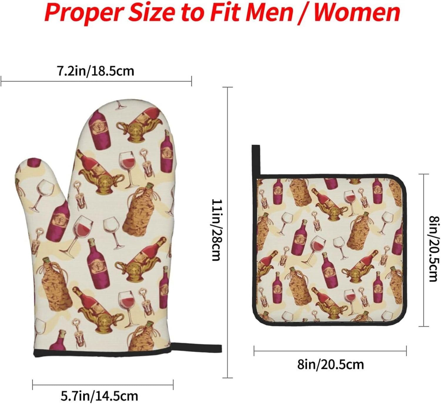Discover the ultimate blend of functionality and style with our Red Wine print heat-insulating gloves, crafted from premium polyester and heat-insulating fabric. These gloves are not just any ordinary pair; they are a must-have for your kitchen and outdoor grilling adventures. With a finely crafted design, they offer a thick, durability layer of protection against heat, making them your go-to for handling hot kitchen lids, microwave ovens, ovens, and more. The innovative side hanging rope design ensures easy hanging and storage, adding convenience to your daily routine. Whether you're a culinary enthusiast or a weekend grill master, these gloves are designed to meet your needs, offering a unisex appeal that suits everyone. Elevate your kitchen game with our heat-insulating gloves, where quality meets practicality. Fit for those who value both form and function in their kitchen essentials