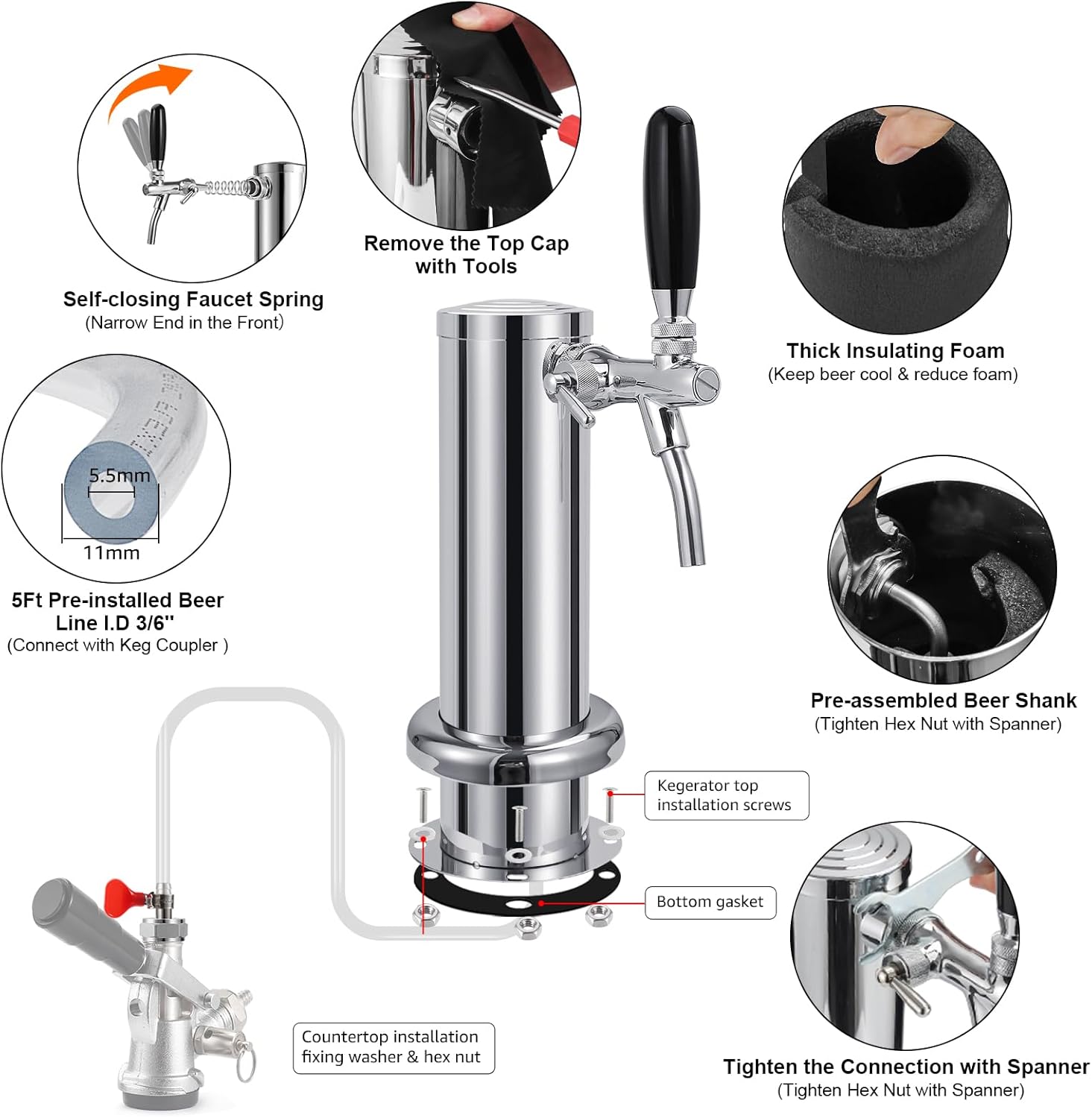 | Style | D Keg Coupler + Adjustable 1-Tap Kegerator Tower |