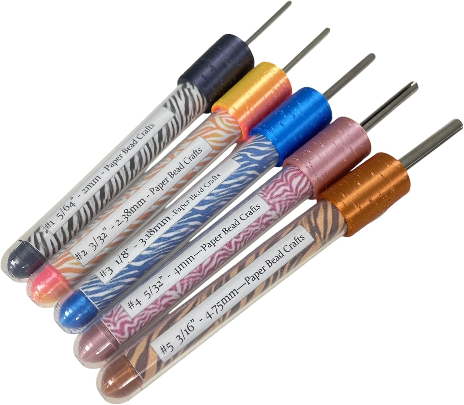 Set of 5 Slotted Paper Bead Rollers in Rainbow Filigree Prints